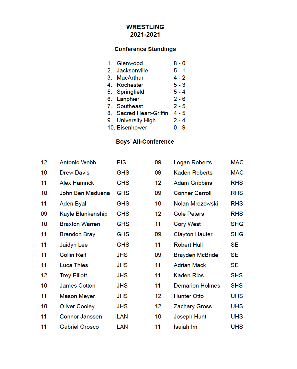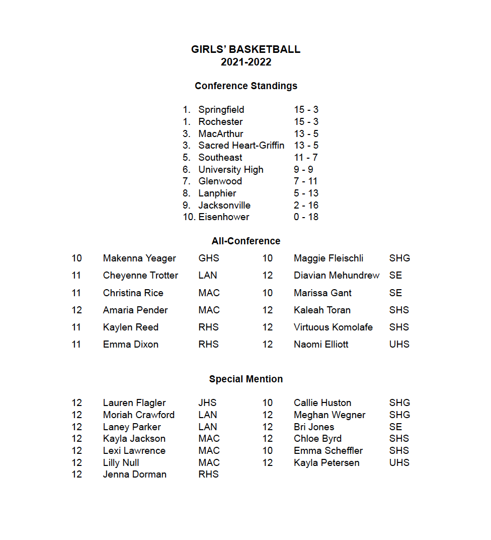 Central State Eight Winter 21-22 All-Conference and Academic All-Conference