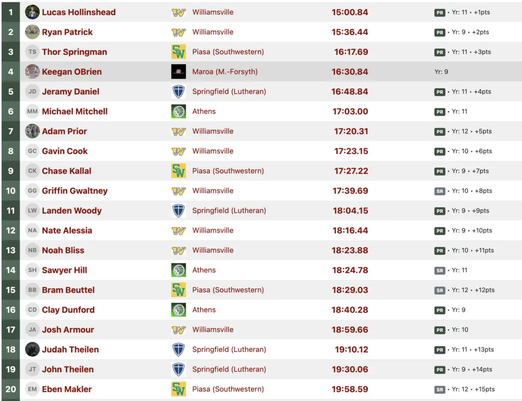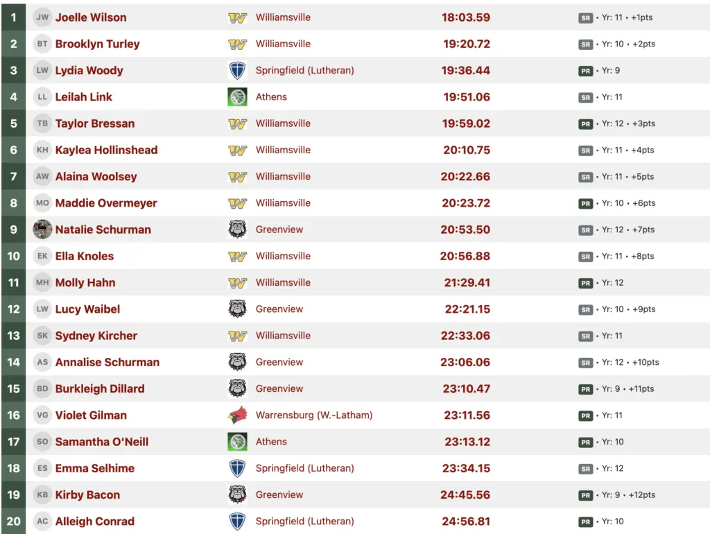 The Williamsville Bullets began the cross country season with a victory at home in the Rust Buster Invite. Lucas Hollinshead took the boys race and Joelle Wilson the girls event. Williamsville also won the team title as well. Full meet results can be found here