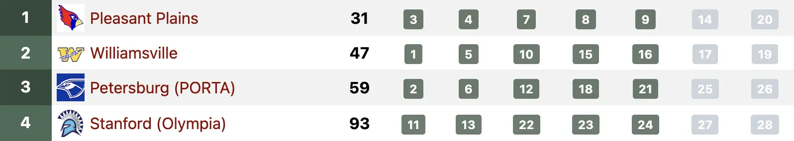 Williamsville junior Lucas Hollinshead won the boys individual Sangamo title while the Pleasant Plains Cardinals won team title. Hear from Hollinshead and Pleasant Plains’ Elijah Teefey following the race and find full individual results HERE.
