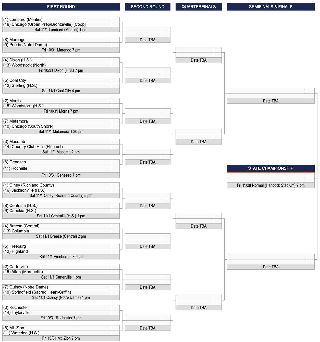 The Taylorville Tornadoes are 5-4 this season and will travel to Rochester to take on the Rockets in Round One of the IHSA state playoffs in the 4A south bracket. We spoke with Jeb Odam, head coach at Taylorville, about the 4A bracket, this season and having a close round one game. You can hear the game on 97.7/970 WMAY on Friday at 7pm.