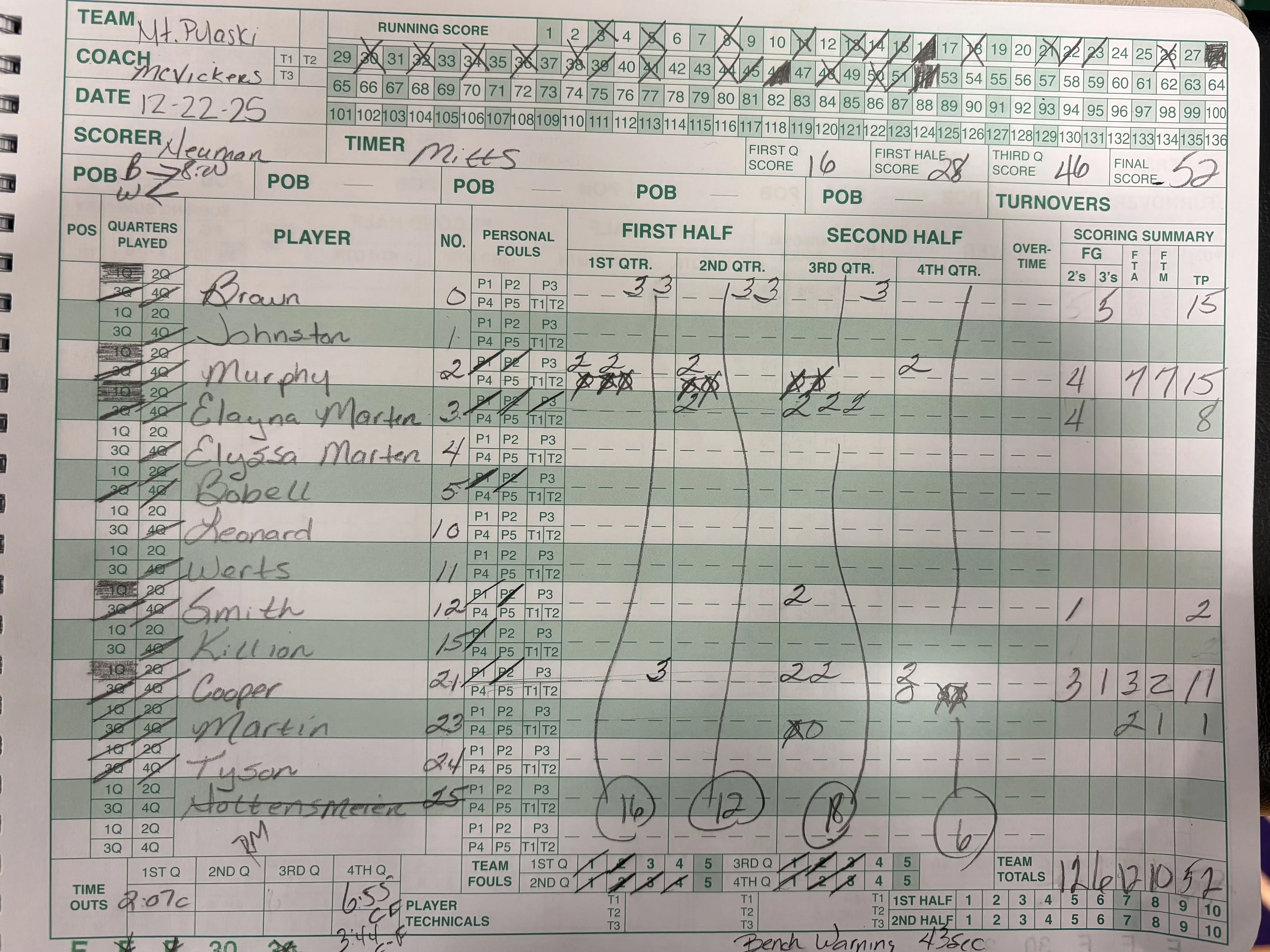 The Mt Pulaski Hilltoppers move to 10-0 this season with a 52-16 victory over Williamsville on Monday evening. Addison Brown and Alyson Murphy both scored 15 points for the Hilltoppers. Mt Pulaski will compete in the Riverton Christmas Classic starting Saturday while Williamsville plays in the Carlinville Holiday Tournament starting Friday.