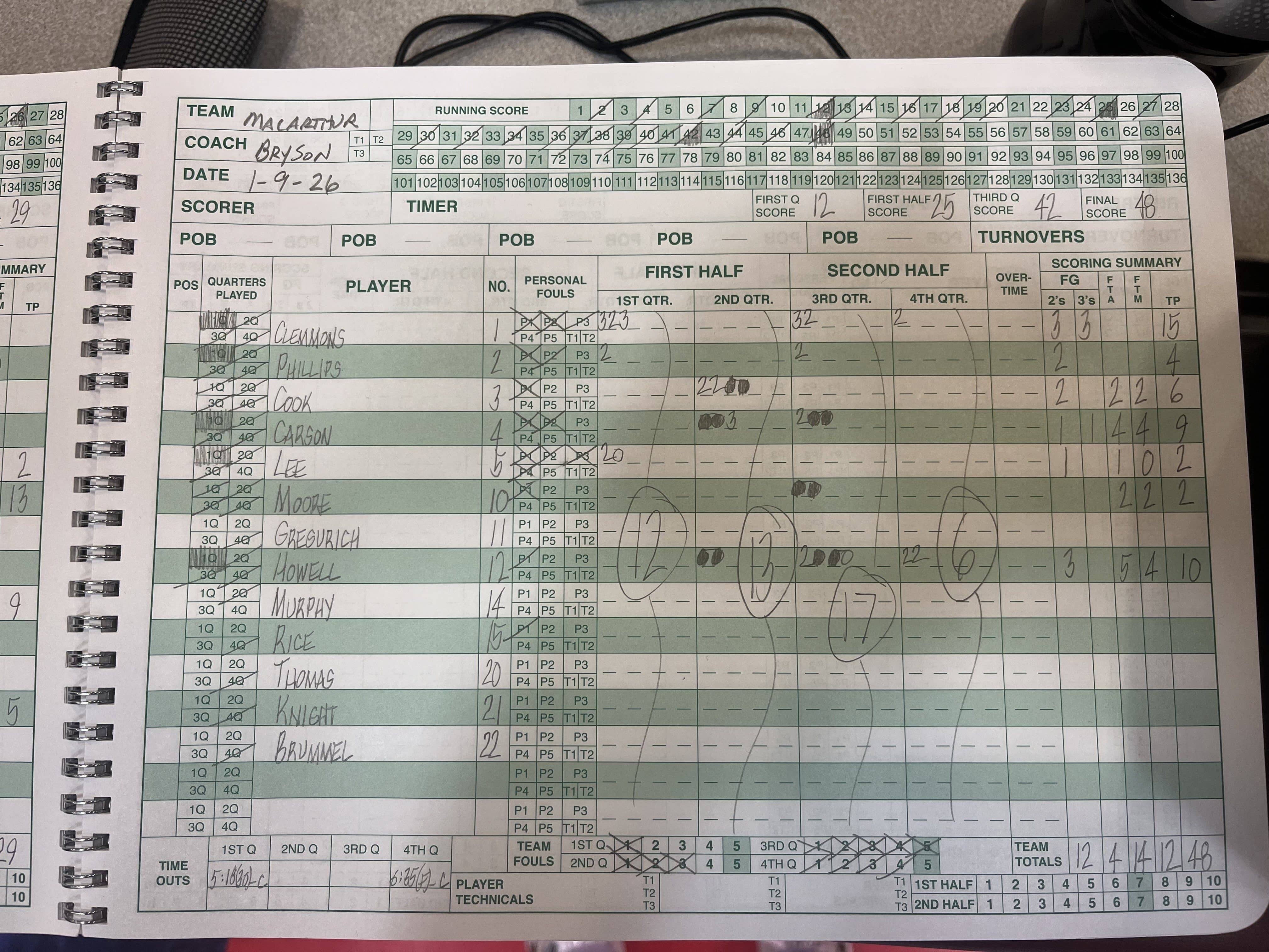 The MacArthur Generals pulled away from the Glenwood Titans for a 48-29 CS8 victory on Friday night. That victory moves the Generals to 14-0 this season. MacArthur was led by TiShawn Clemmons and Kendall Howell with 15 and 10 points a piece. Cohen Reid scored 13 for the Titans. Glenwood travels to Centennial on Saturday while MacArthur hosts Jacksonville on Tuesday.