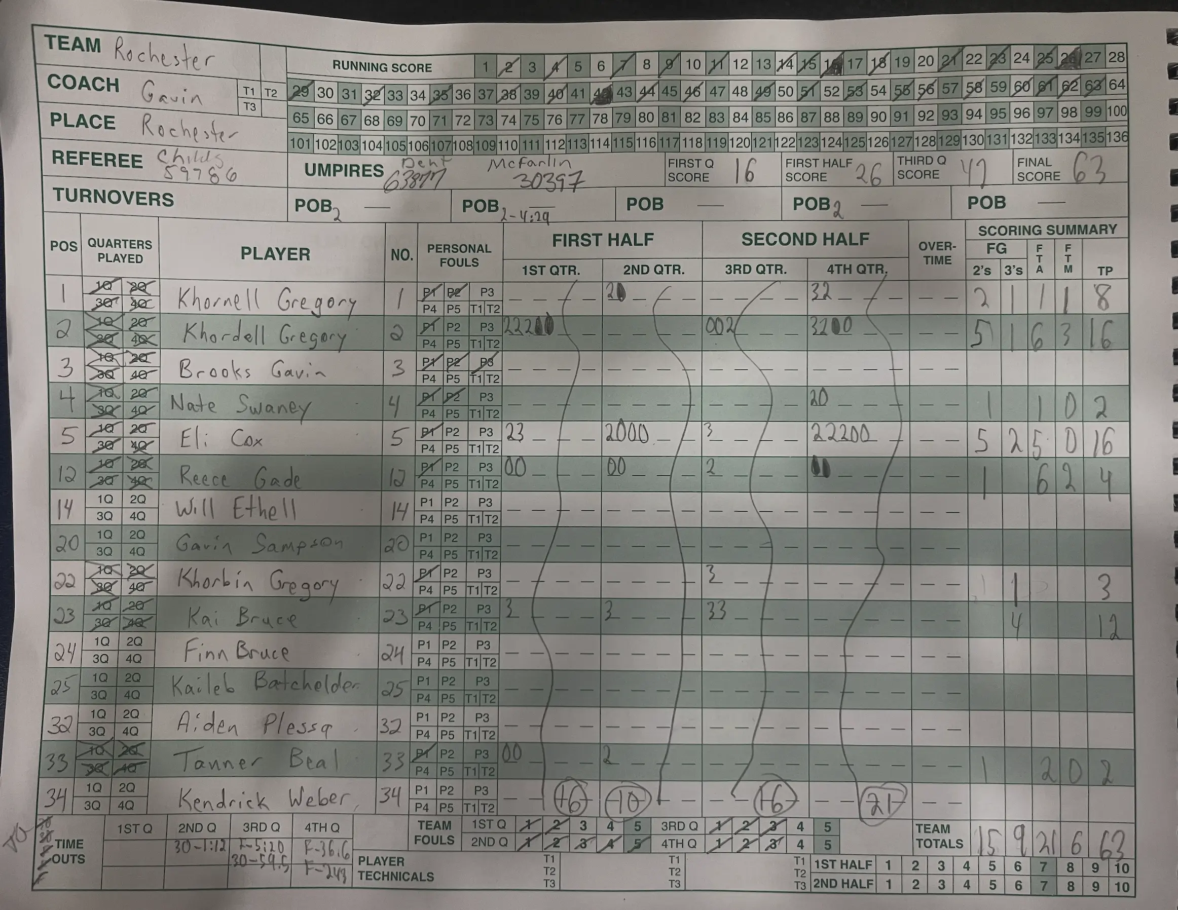 Despite shooting 6 for 21 from the free throw line, the Rockets made the last three that mattered most. Reece Gade hit two free throws with 24 seconds left to give Rochester the lead and ultimately a 63-61 victory over Sacred Heart Griffin. Myles Montgomery and Terrion Wallace led the Cyclones to going up by as many as a dozen in the second half and 11 in the fourth quarter. Khordell Gregory and Eli Cox each scored 16 for the Rockets.