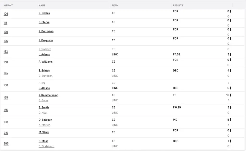 Glenwood came out on top 57-9 against Lincoln in a matchup of conference unbeaten squads. The Titans only lost two bouts on their way to the conference win. Each team also picked up a win against Normal U-High. Glenwood heads to Sacred Heart Griffin next Thursday. Full results from Glenwood and Lincoln can be found below.