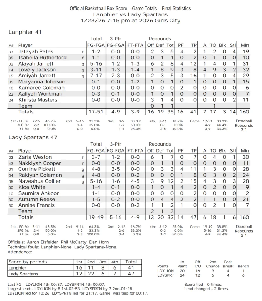 Southeast defeated Lanphier 47-41 on night three of the 2026 City Tournament. With the victory, the Spartans are 2-0 and will play Springfield High for the outright girls City title at 6:30pm Saturday. Naveahua Collier led Southeast with 15 points while Amiyah Jarrett led all scorers with 16. Lanphier will face SHG at 3pm to open the final day of the tournament.
