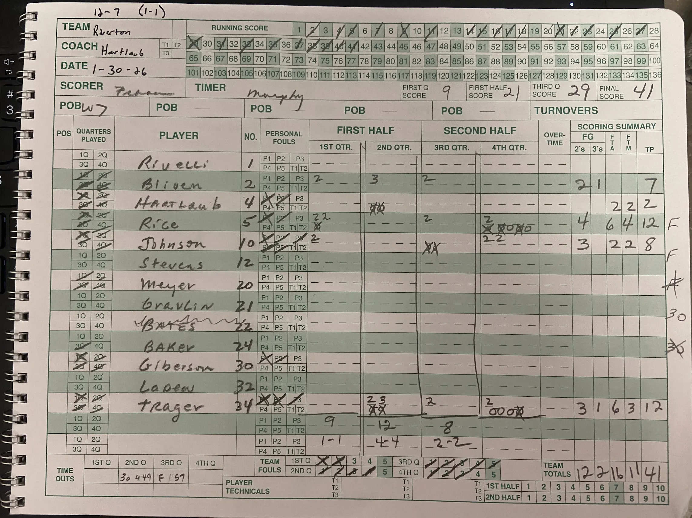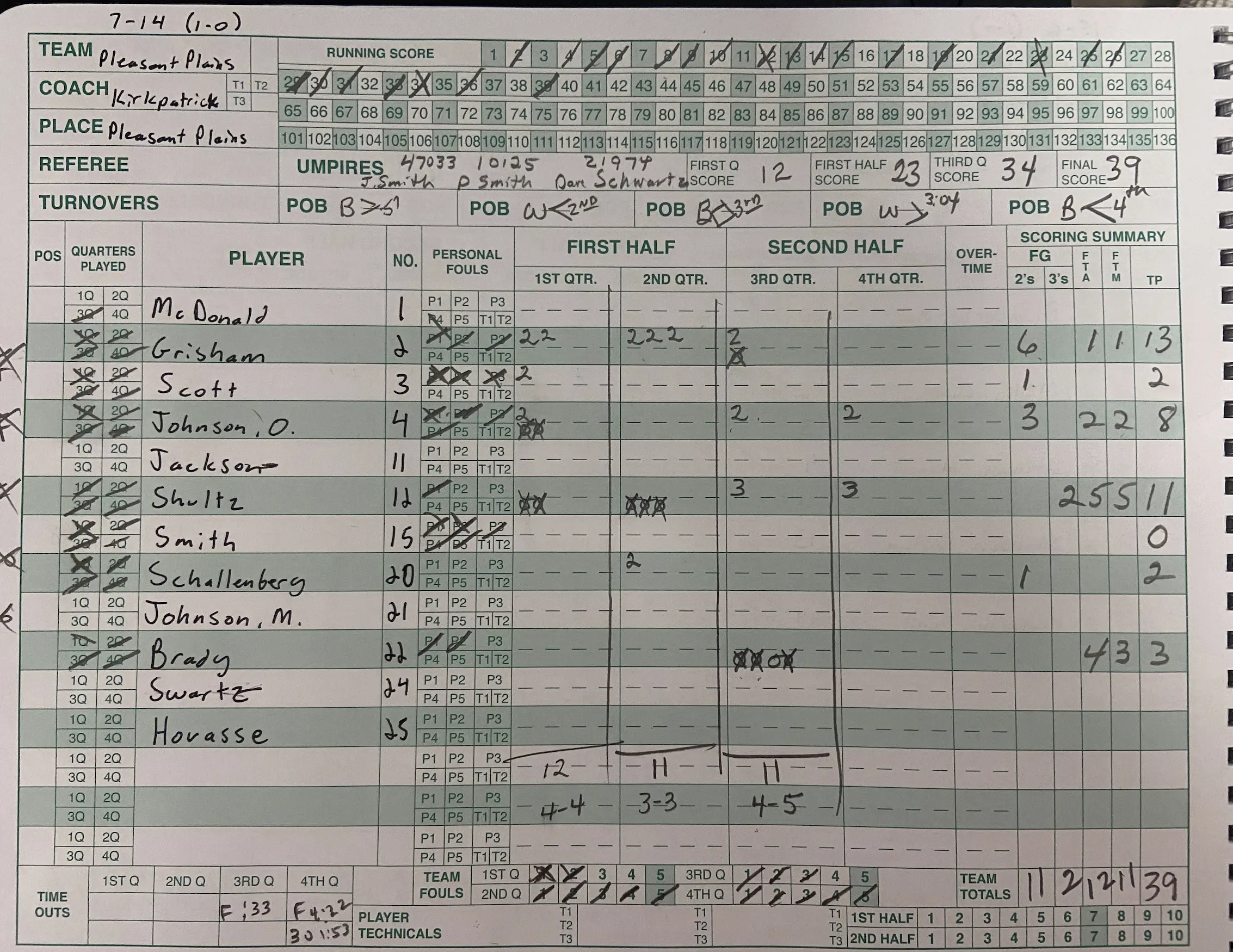 After trailing for most of the game, Riverton grabbed the lead with just under 5 minutes left and held on for a 41-39 win over Pleasant Plains. Julian Rice and Jaxsen Trager led the Hawks with a dozen while Grady Grisham led all scorers with 13 for the Cardinals.
