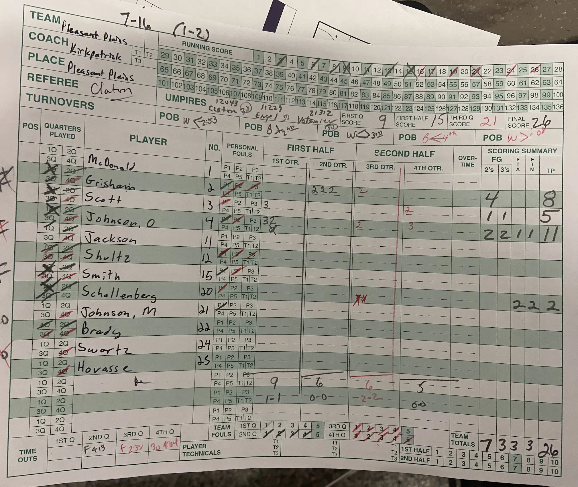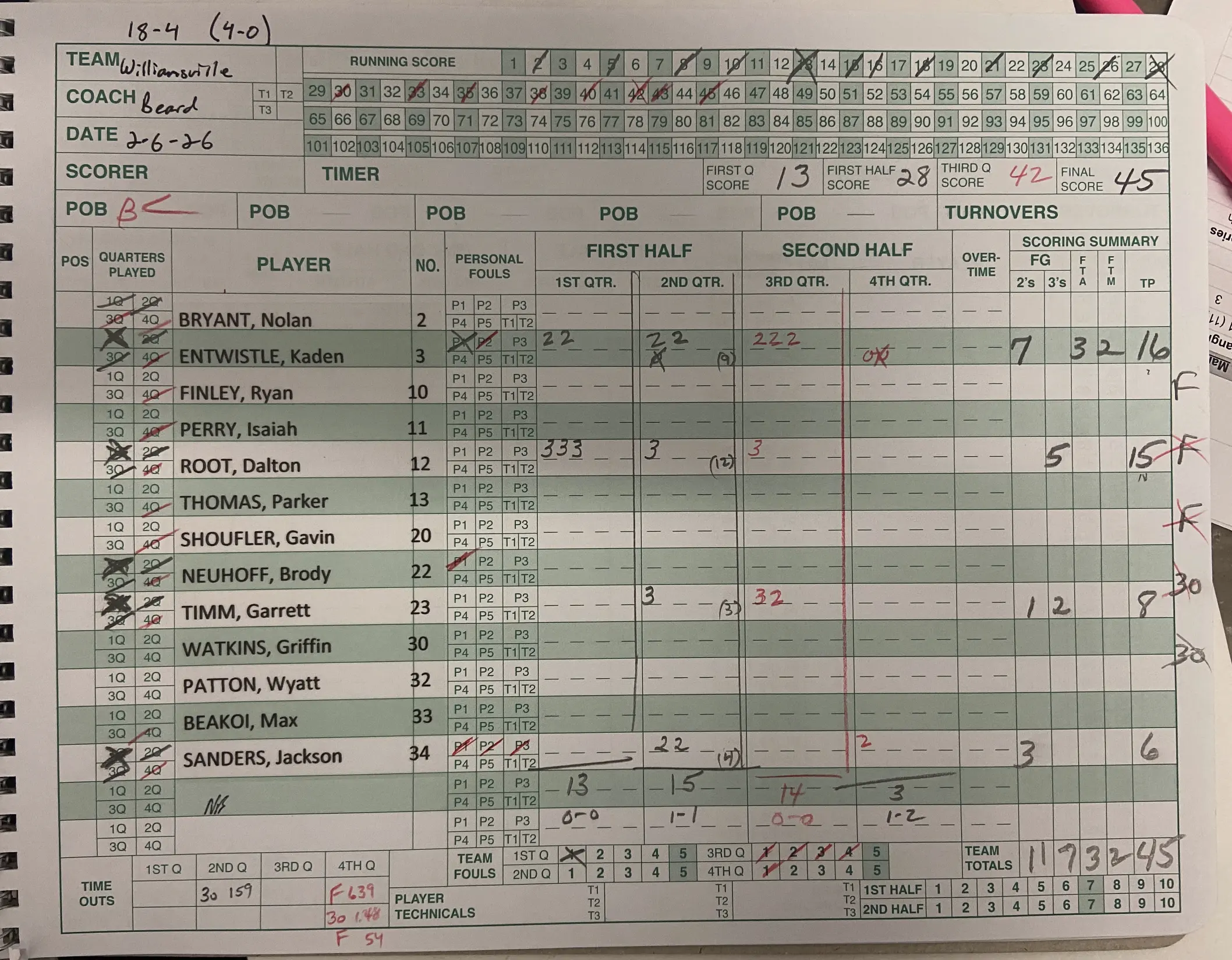 Williamsville locked down defensively against Pleasant Plains and got a balanced scoring attack inside and out for a 45-26 Sangamo conference win on Friday night. The Bullets were led by Kaden Entwistle with 16 and Dalton Root with 15. Owen Johnson had 11 for the Cardinals.