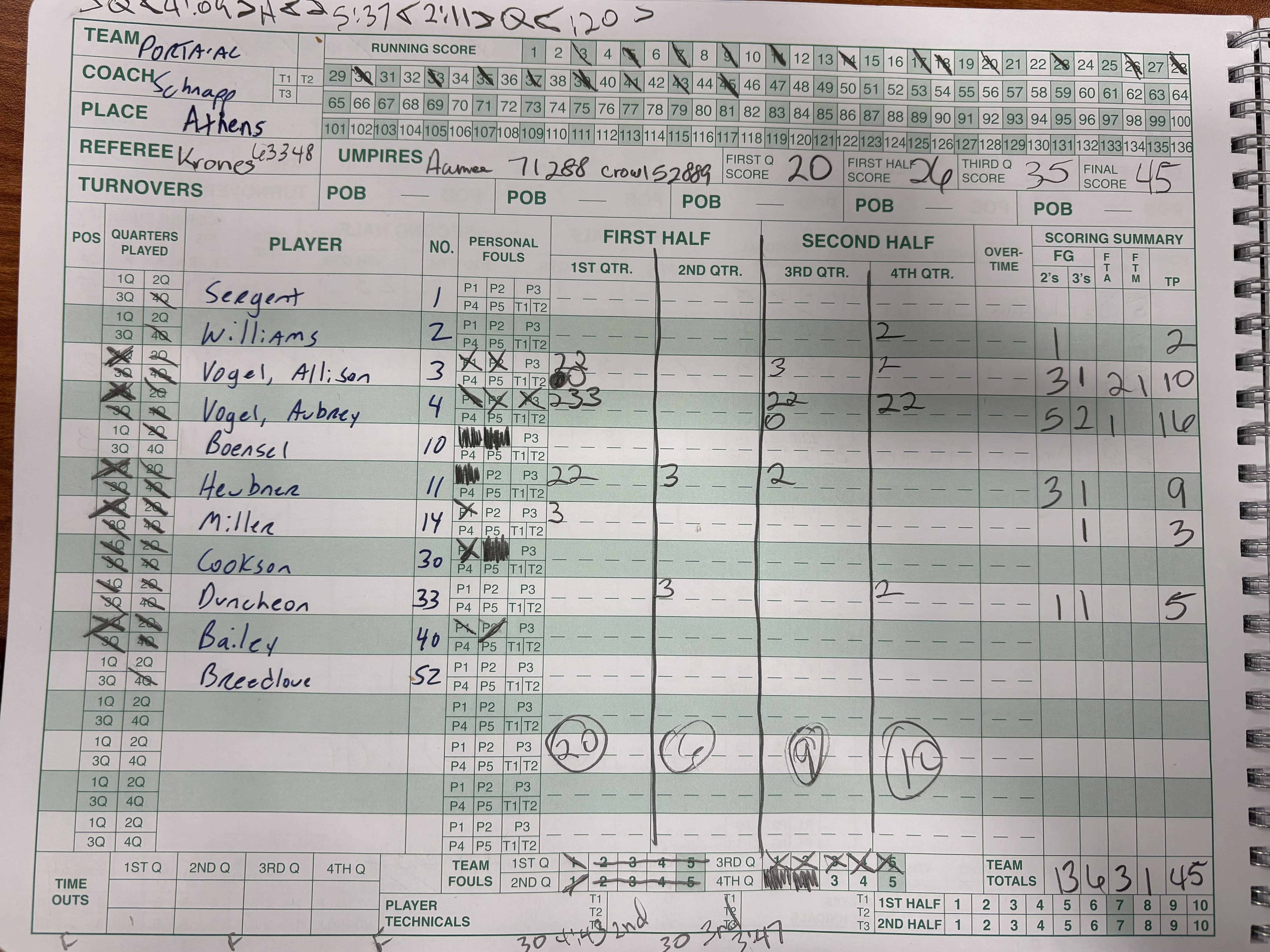 The PORTA Lady Jays are now 7-0 in the Sangamo thanks to a 45-15 victory over Athens on Monday night. The Lady Jays were led in scoring by Aubrey Vogel with 16 and Allison Vogel with 10. PORTA will host 7-0 Pleasant Plains for the Sangamo title on Wednesday while Athens finishes the regular season on Thursday at Olympia.