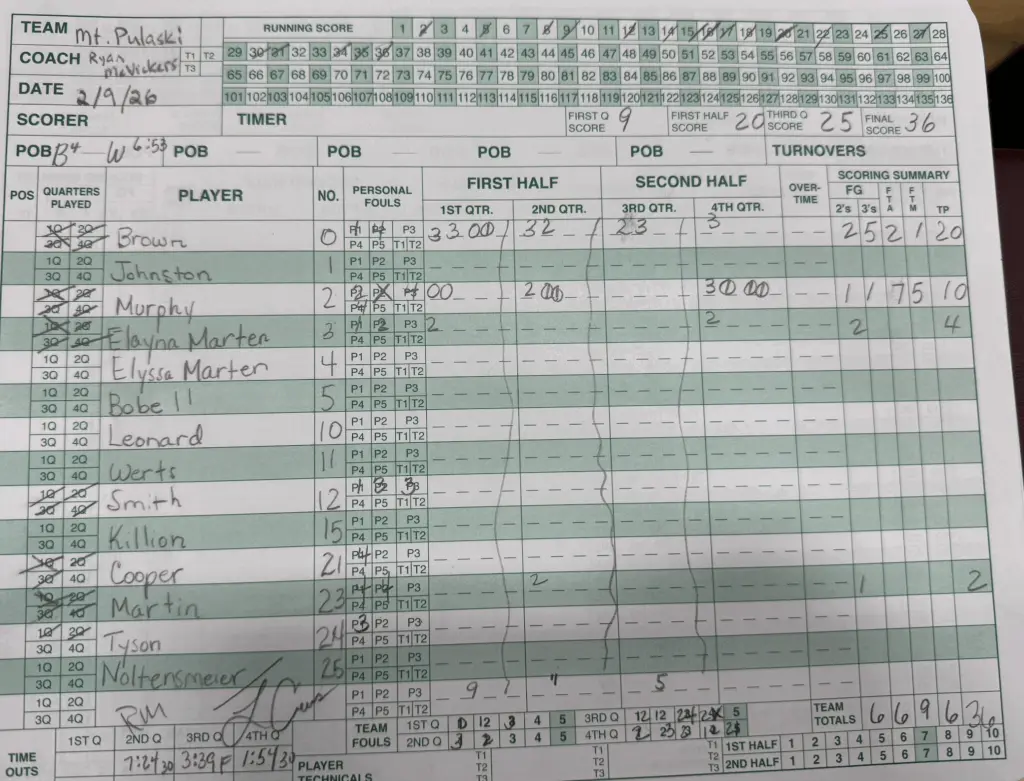 25-0 Mt. Pulaski visited the 24-4 Clinton Maroons on Monday night. The Maroons picked up win number 25 with a 49-36 over the Hilltoppers, ending Mt. Pulaski’s undefeated season. Clara Dempsey led Clinton with 23 points in the first three quarters. Addison Brown scored 20 for Mt. Pulaski. The Hilltoppers have games against SJO and Eisenhower remaining before Regionals begin.