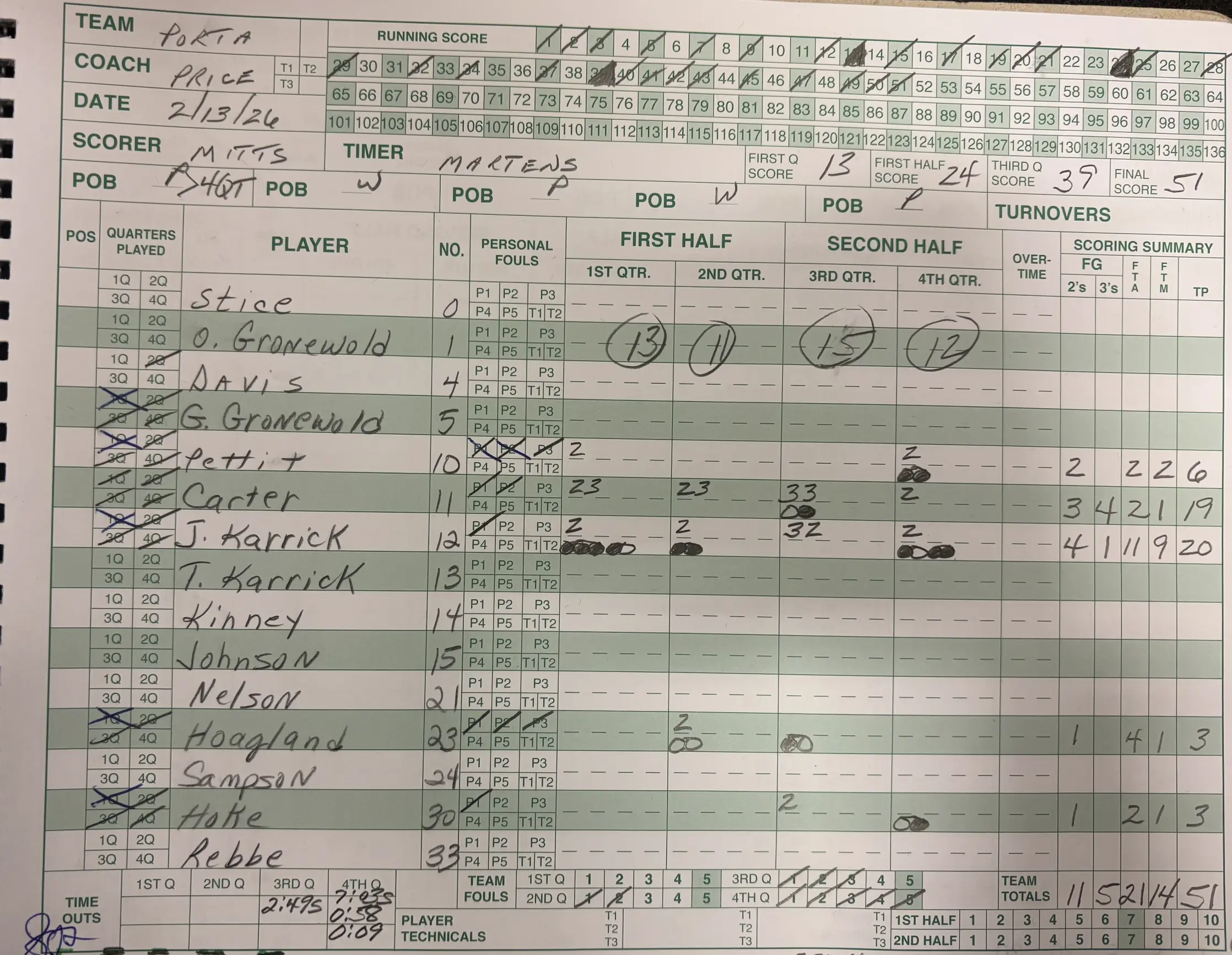 Jett Karrick knocked down two free throws with 2.9 seconds left to power PORTA to a 51-49 win over Williamsville on the road on Friday night. The Bluejays are 7-0 in Sangamo conference play, handing the Bullets their first conference loss this season in this Foot & Ankle Center of Illinois game of the week. The Bluejays close out conference play next week with road trips to Auburn and Olympia.