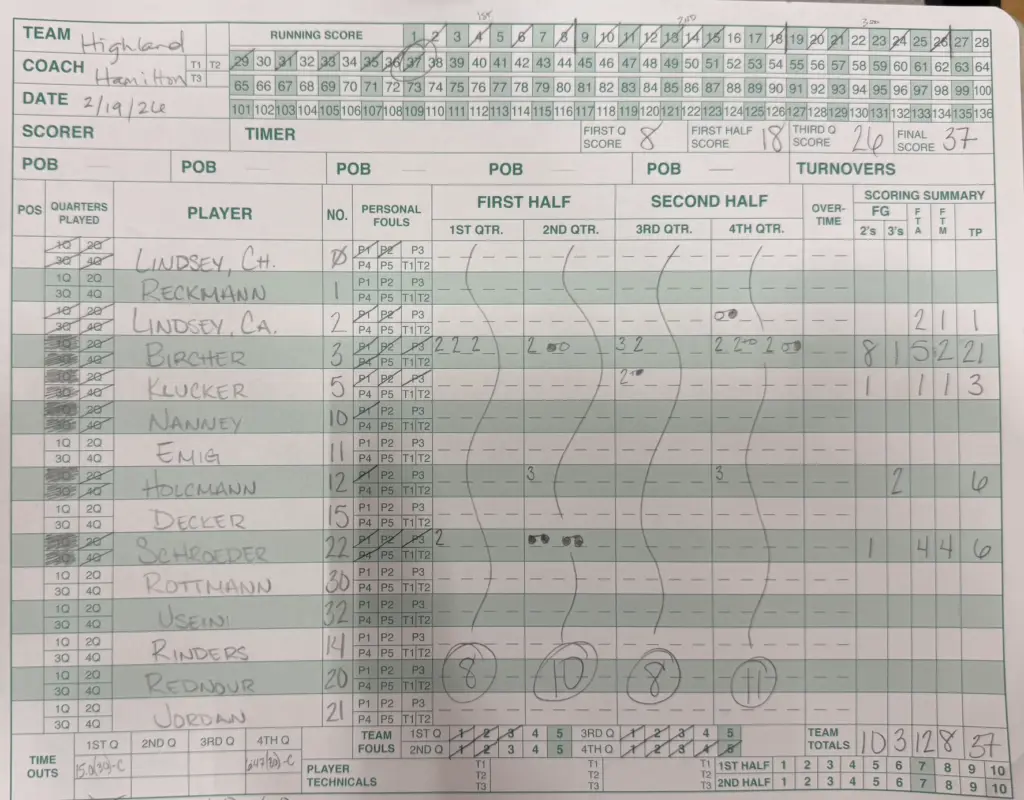 Glenwood met Highland in the 3A Highland Regional Final. It was a defensive battle throughout with the Titans pulling away in the fourth to win 49-37. The Titans spread their offense around. Alexis Neumann led the team with 13, followed closely by Jemma Lamb with 11 and Ava Bobb with 10. Jordan Bircher scored 21 for Highland. Glenwood advances to the 3A Waterloo Sectional where they will play Carbondale at 6 pm on Tuesday.