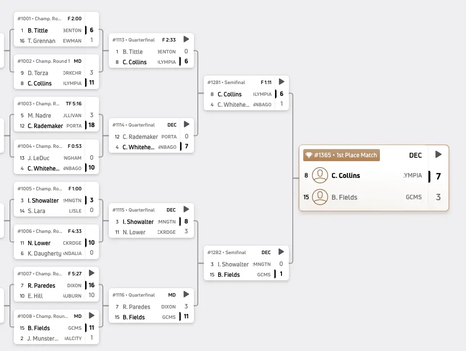 Olympia freshman Connor Collins won the Class 1A 106 pound state title on Saturday by a 7-3 decision. We spoke with Collins and his dad (and coach) after the match.